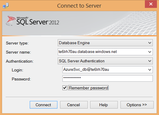 Once that is done, you can go ahead and login via SSMS as shown below.