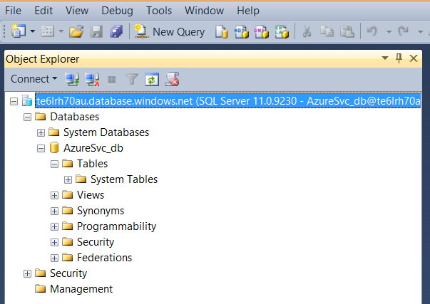 Now, let's open the SQL Server Management Studio and connect to the database that we created in Azure. However, when connecting to the Azure Portal via SSMS the firewall may obstruct the connection as shown below.