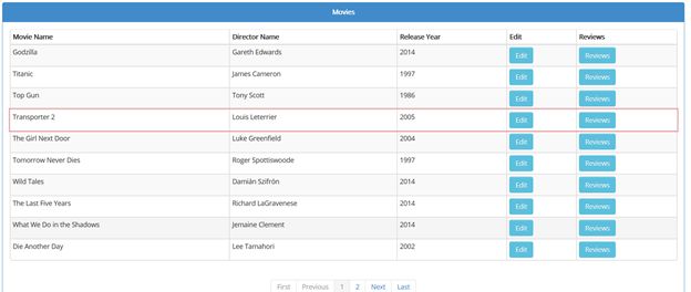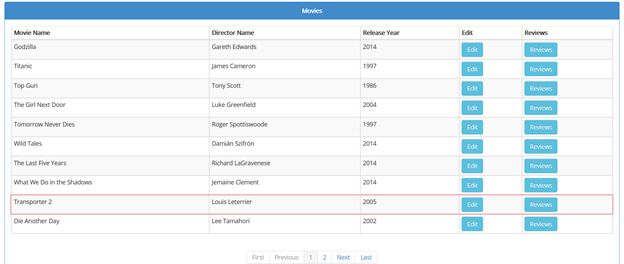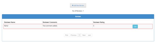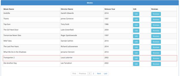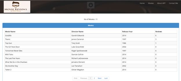 After adding a Review, the position of the newly added movie moves up in the list since behind the scenes the order by clause is working on the total number of reviews. Now, when I click on the Reviews link again, it will show me the review that I added.