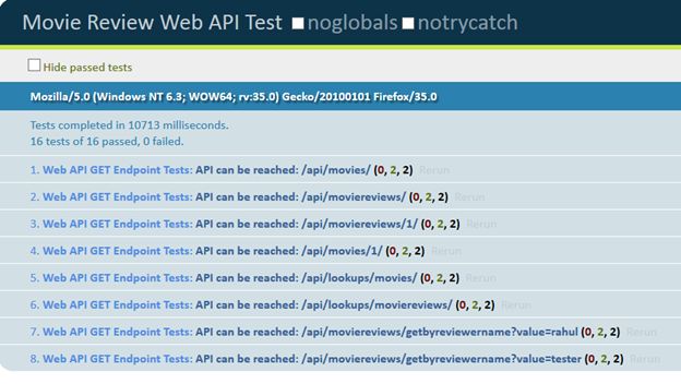 I have also used the QUnit Library to test my Web APIs. The following is a glimpse of it.