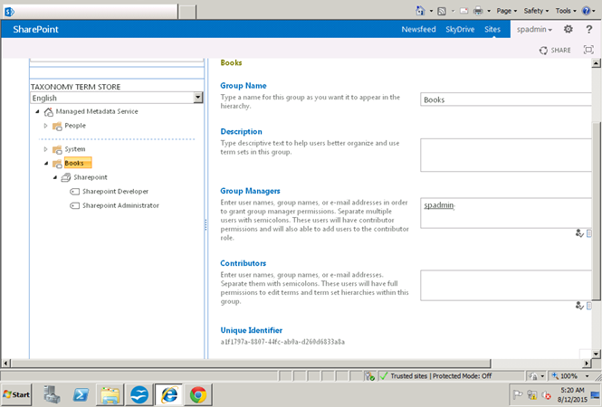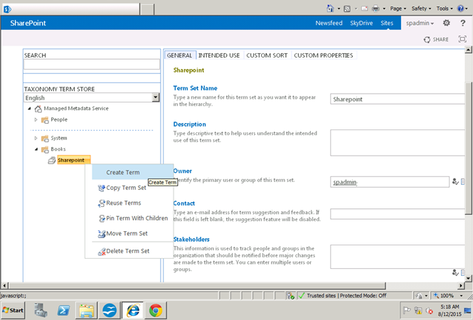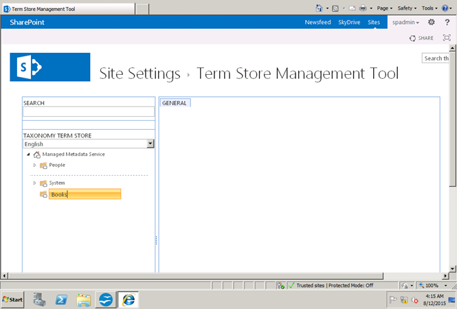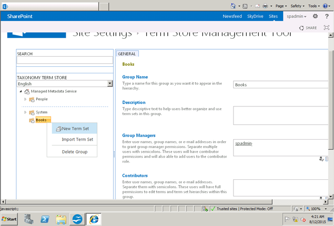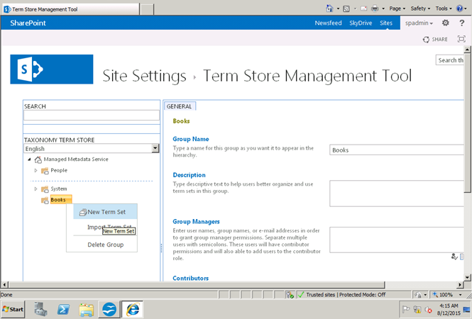 Now I will create a new term set under books.
