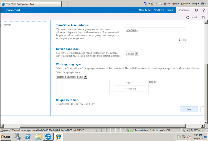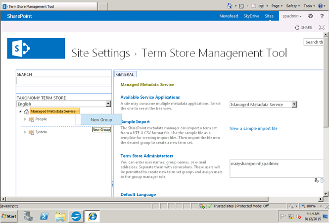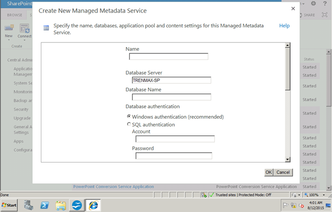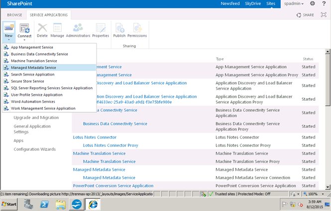 Let's see how to configure a managed metadata service application in SharePoint 2013.