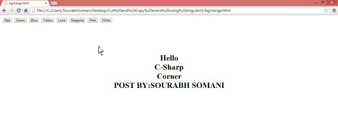 Now I am creating various for many colors inside the body tag and binding different color styles with "ng-click" directive.