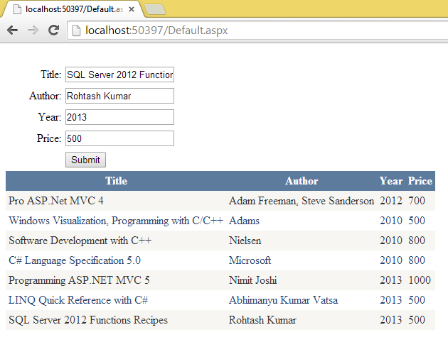 btnSubmit (Button that we have placed at aspx page) write the following code: