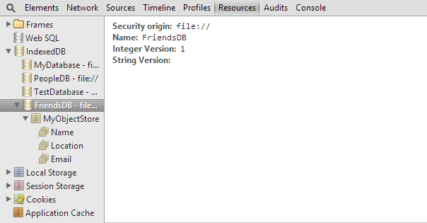 If you want to see whether or not the database is created then open the developers tool and the output will look like this (in Chrome):