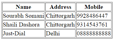 - Table Cells: The cells of the table may be the heading of the table and may be data of the table. Using <th> we specify the heading cells and using <td> tag we specify the data cell of the HTML element.