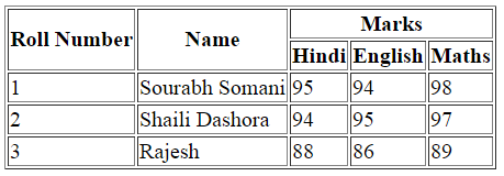 - We can merge the table rows using rowspan and we can merge a table column using colspan.
