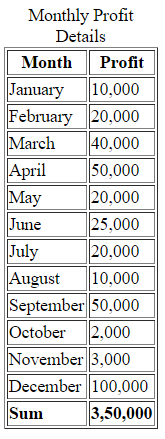Table with caption, thead, tbody and tfoot: the <Caption> tag provides a caption for the table. The headings for the table should be placed inside the <thead>. The body of the table should be inside the <tbody> element and if you want to set the footer of the table then <tfoot> is used.