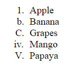 You can see in the preceding output, we are getting the list with a number but it is possible to change the li types using the type attribute of li. An ordered list type has the following values: