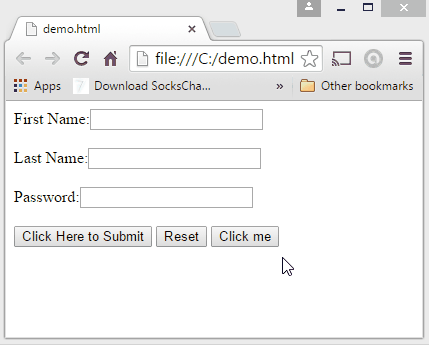 Submit: The submit defines a button for submitting form input to a form handler. The form handler is a script and that script processes the data to the server.