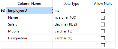 - SQLCommand = ("INSERT INTO EmployeeMaster(Name, Salary, Mobile, Designation) VALUES (?,?,?,?)")