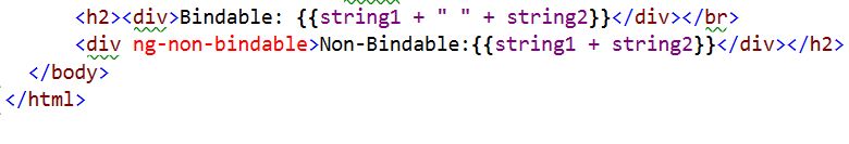 <div ng-non-bindable>Non-Bindable:{{string1 + string2}}</div></h2>
