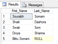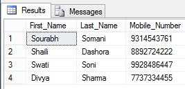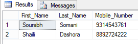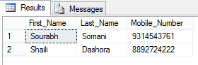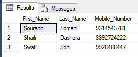 To understand this operator let's create a table #TempTable (temporary table) with the 3 columns First_Name, LastName and Mobile_Number and then insert data into it like: