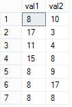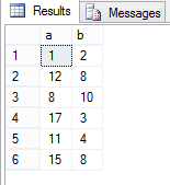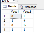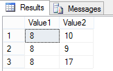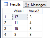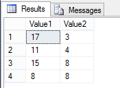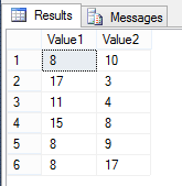 INSERT INTO #TempTable VALUES(1,2),(12,8),(8,10),(17,3),(11,4),(15,8)