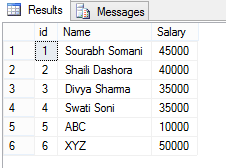 In the above example if we use INTERSECT instead of EXCEPT then the output will be: