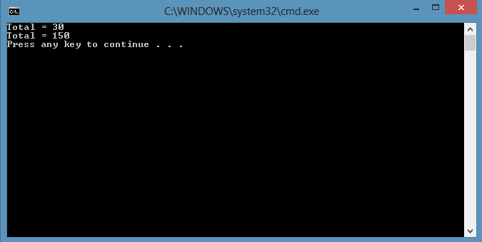 - Console.WriteLine("Total = " + result.ToString());