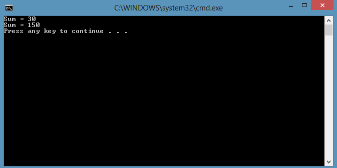 - Console.WriteLine("Sum = " + result);
