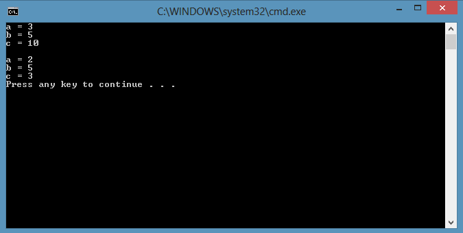 - Console.WriteLine("a = " + a);