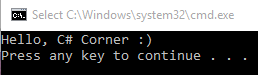 - print("Hello, C# Corner :)")