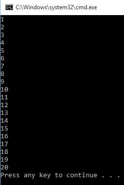Example: Printing 1 to 20.