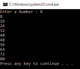 Example 2: Printing table of given number.