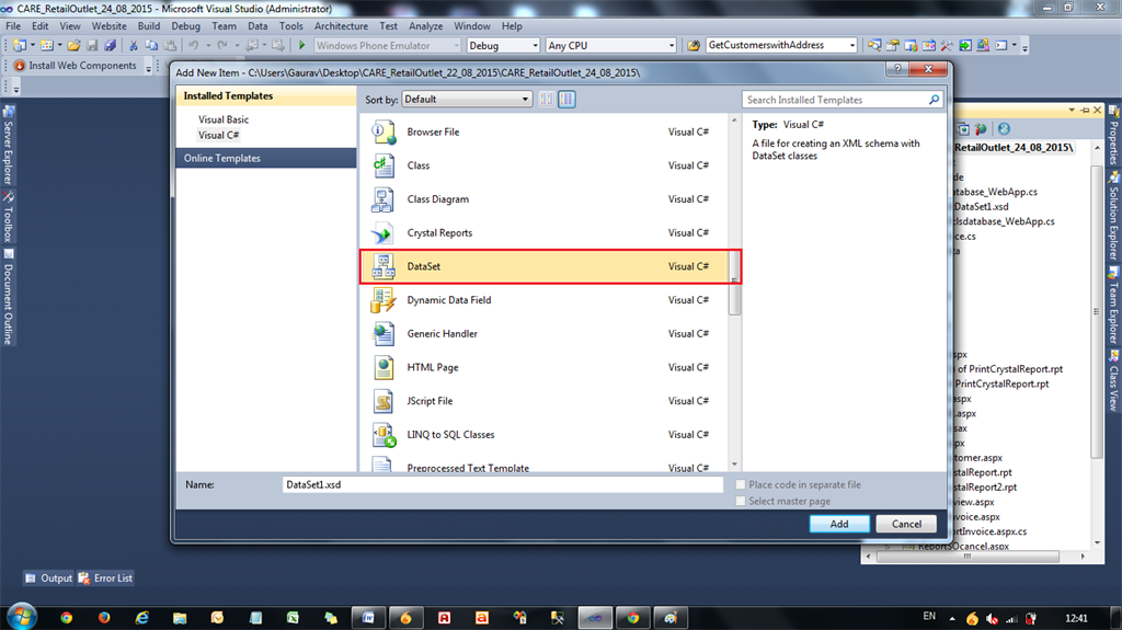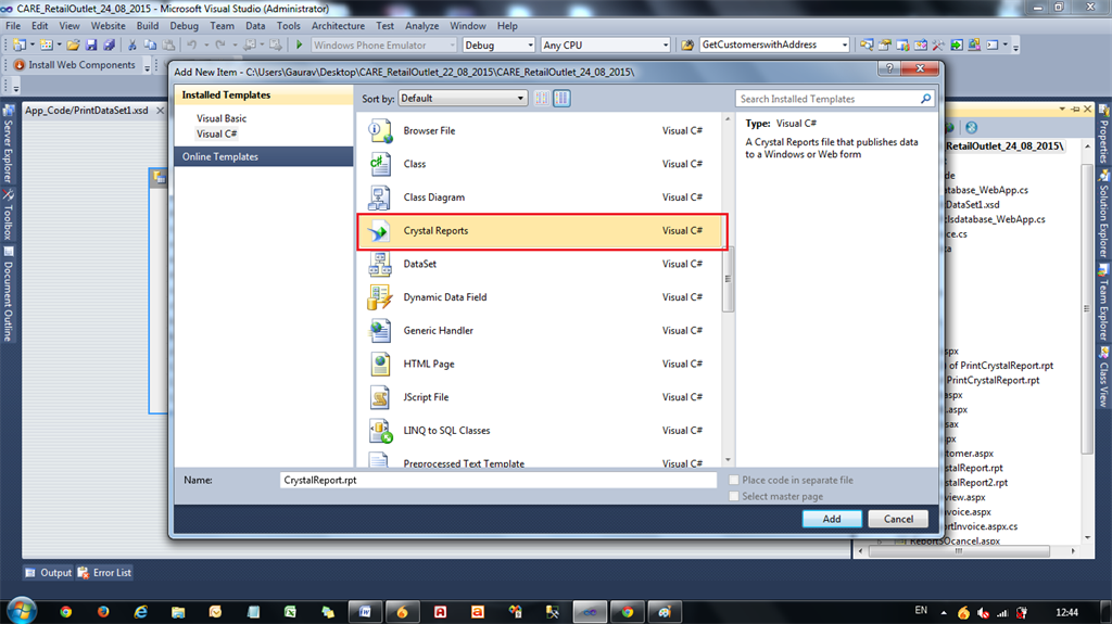 Note: To use Crystal Reports in Visual Studio 2010, you need to download CRforVS_13_0.exe and install it.