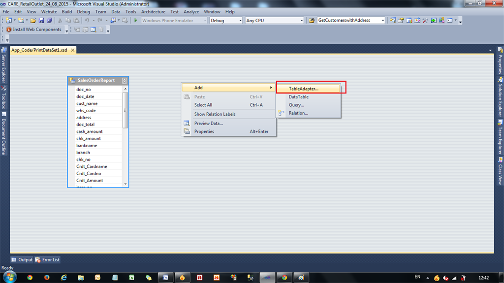 In this Table Adapter, Add Columns depending on the Database Tables fields.