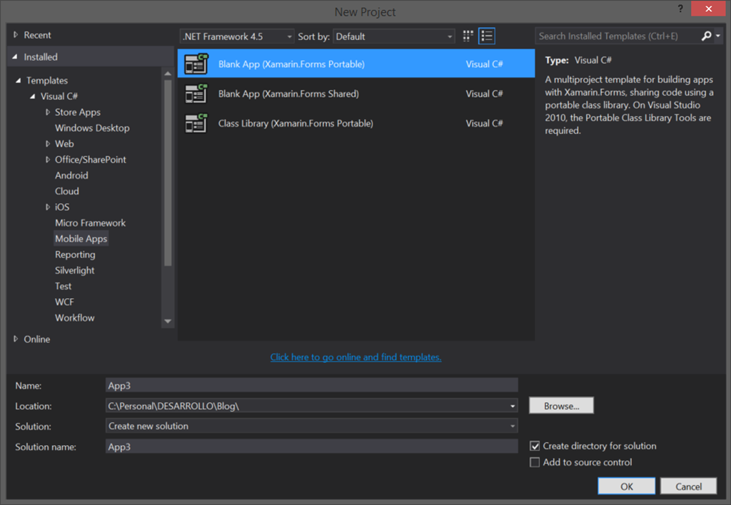 To start testing this preview, you will need to create a new Xamarin.Forms project, using the portable template, from Visual Studio: