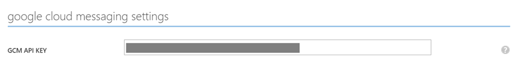 Now you can return to the Notifications Hub configuration and enter this API KEY in the Google cloud messaging key configuration: