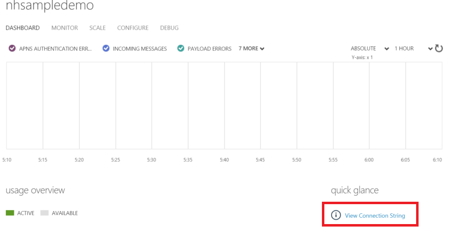 - NotificationHubClient hub = NotificationHubClient.CreateClientFromConnectionString("<FULL ENDPOINT>", "nhsampledemo");