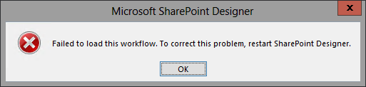 “Failed to Load this workflow. To correct this problem, restart SharePoint Designer.”