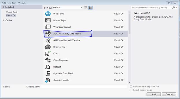 Adding ADO.Net entity model into website