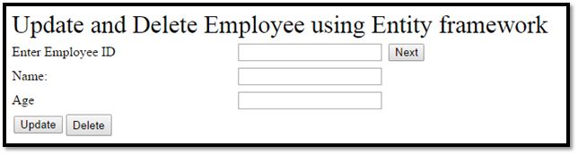 At first we need to retrieve a specific employee record from the database so that we need to use this code for retrieving data from the database. Write this code on the Next button click. This code populates the employee name and age in a TextBox depending on employee id.