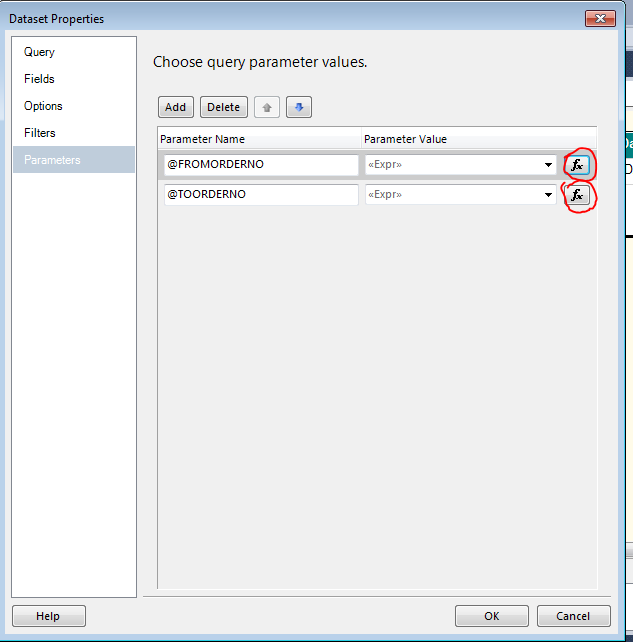 After the preceding step we need to validate both parameters before passing to the dataset. Click on the button and write an expression.