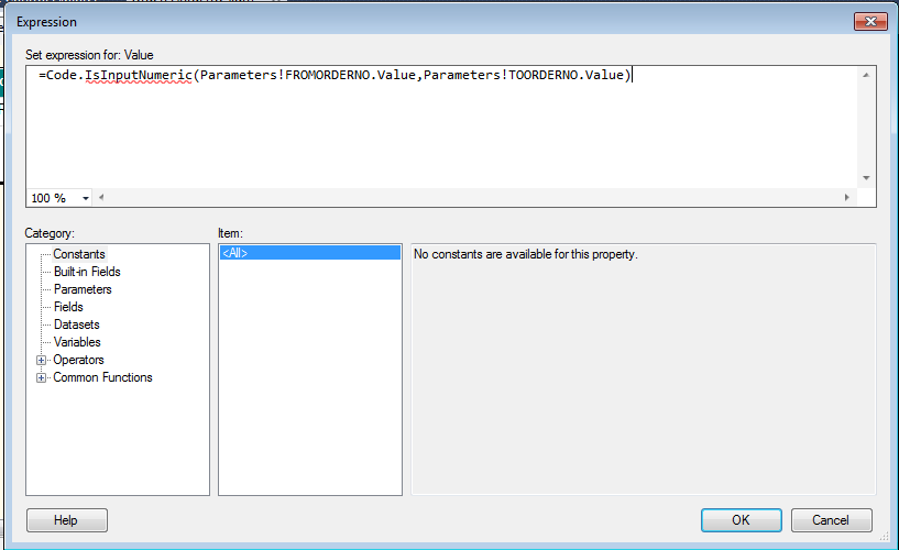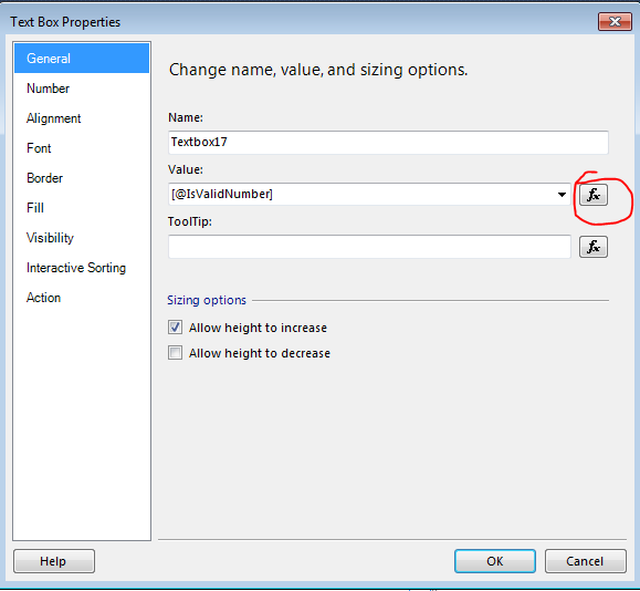 Step 4Now we need to add a TextBox to the SSRS report design and then go to the TextBox properties window and call the IsvalidNumber parameter in the value expression of the TextBox and then set the visibility of the TextBox.