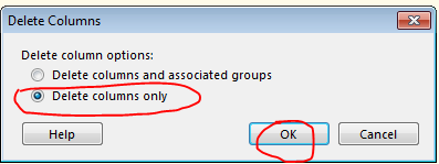 After clicking on Delete Columns select Delete Columns Only from this window and click OK.