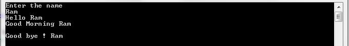 - Console.WriteLine("Extension speaks method : Hi " + name);