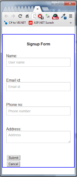 Now I will explain how to create a simple signup form with a responsive page. Once you add foundation.min.js and foundation.min.css you can get very many classes.
