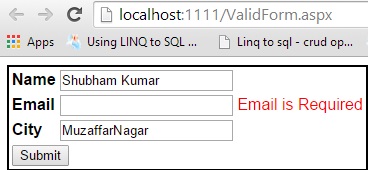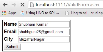 The form will now postback but then we will provide inputs for all the TextBox validated by our JavaScript function.