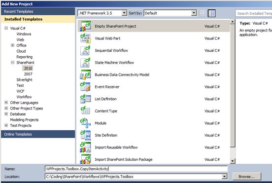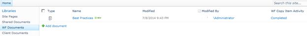 Part 4: Copy Item Activity in SharePoint 2010 WorkflowIn this part, I will explain how to use Copy Item Activity that is available in Workflow Toolbox to copy an item from one document to another Document Library using Visual Studio 2010.Step-by-step Implementation