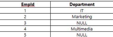 As you can observe, all the data is listed from the selected column, EmpId, of the Left table J1 whereas the right side table shows the matching and Null for the missing data for the respective Left column.