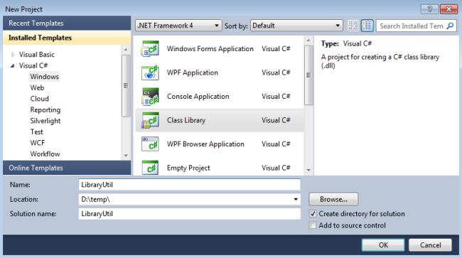 3. Build this code and you will see that a DLL file has been created rather than an exe in the root directory of the application (path = D:\temp\LibraryUtil\LibraryUtil\bin\Debug\ LibraryUtil.dll)