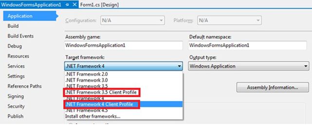 Now if you think from a deployment point of view, you would want your installer package to be as optimized and small as possible, so it requires a minimum of what is required on the client machine. This can be done by the Client Profile flavor of .NET 3.5 and 4.0.