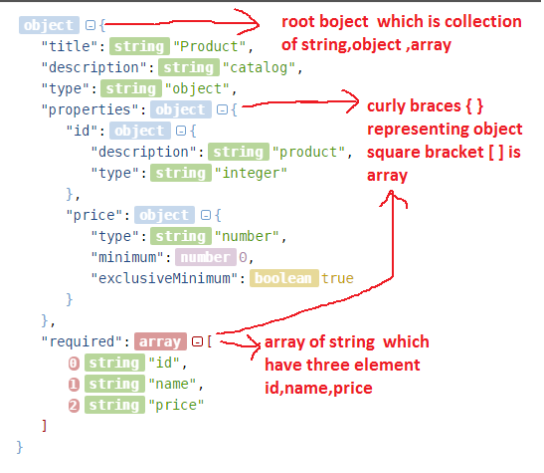 Indicated by bracket we have json arrays and in this example its an array of three string and each string separated by commas: