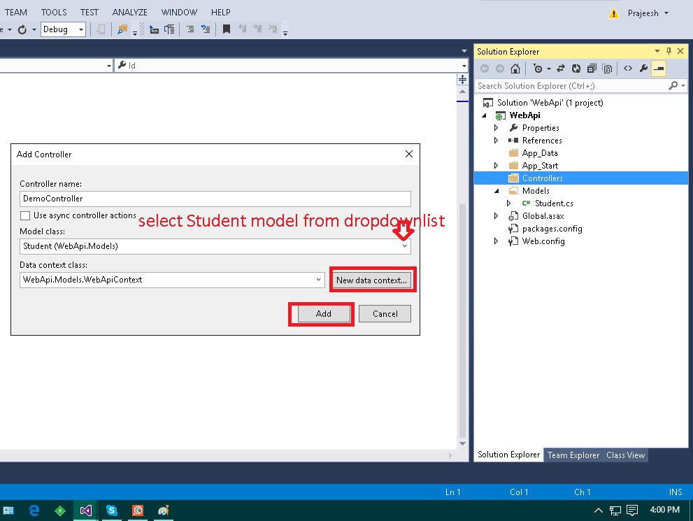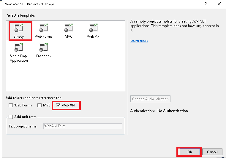 Step 1: In this step we will create empty web API project. So open Visual Studio press CTRL + SHIFT + N as in the following image,