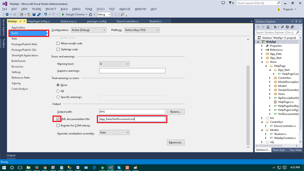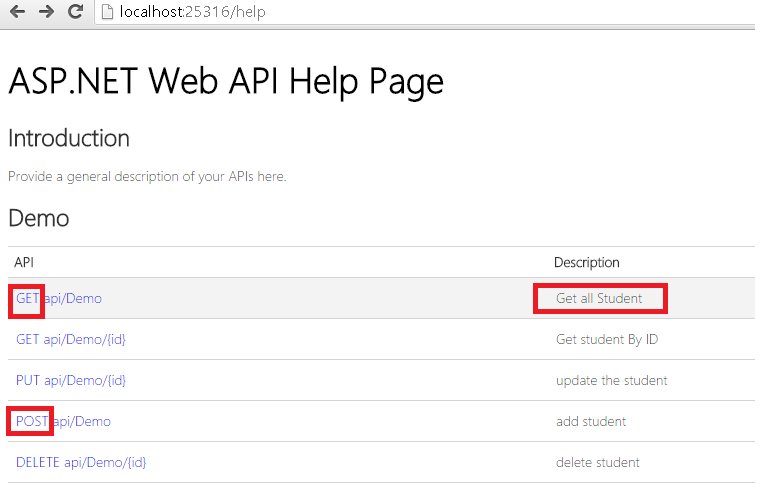 Step 5: Run the application, press F5 and type the url http://localhost:portno/help i.e. http://localhost:25316/help,