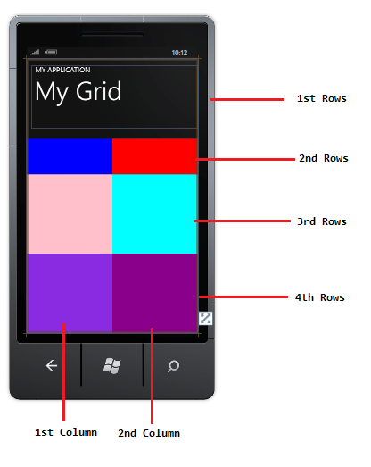 A Grid Element provides more flexiblity to arrange a control in multiple rows or columns. In a Grid element you can set the row and column using these two RowDefinition and ColumnDefinition properties.You can set your control like Textblock, TextBox, Hyperlinkbutton and Image in a cell using row and column definitions.
