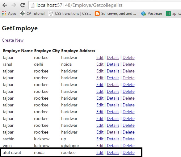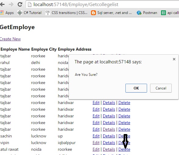 If we click on the delete link then a confirmation window is opened. Click on the OK button then data will be deleted from the database.