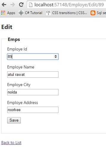 - @Html.ActionLink("Edit", "Edit", new { id=item.Empid }) |