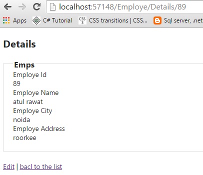 - @Html.ActionLink("Details", "Details", new { id=item.Empid }) |